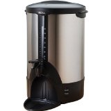 Summary This coffee urn is well made and durable with a housing constructed of stainless steel. You may need to get used to how to dispense coffee as this urn doesn't use the standard push the lever down type of lever. You have 2 levers which you have to push together to dispense the coffee. The urn is well insulated, keeping the coffee hot longer once it is brewed. It is also one of the few urns that you can fit a tall cup under the spigot. Unit brews excellent tasting coffee, keeps it hot, is very durable, and is easy to clean. Features an easy to read water level indicator, stainless steel brew basket, has power/ready indicator lights, 40 cup brewing capacity, removable drip tray, lock on lid for transporting, and has a 1 year limited warranty. I can highly recommend this urn.