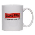 You get a choice of eleven ounce or fifteen ounce ceramic mugs. You have a choice of 7 different colors for the inside of the mug, the outside is white with the inscription "ELVIS FAN And loving every minute of it" emboldened on face of the coffee mug. Mugs are both dishwasher and microwave safe.