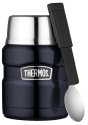 Thermos Stainless King Food Jar Available in Midnight Blue 16 ounce capacity Keeps hot liquids hot up to 7 hours and cold liquids cold for up to 9 hours Interior and Exterior constructed of unbreakable stainless steel Wide mouth for easy filling Lid can also be used as an insulated serving bowl Includes a full size spoon made of stainless steel and can be extended by telescoping Measures 3.7" by 3.7" by 5.6"